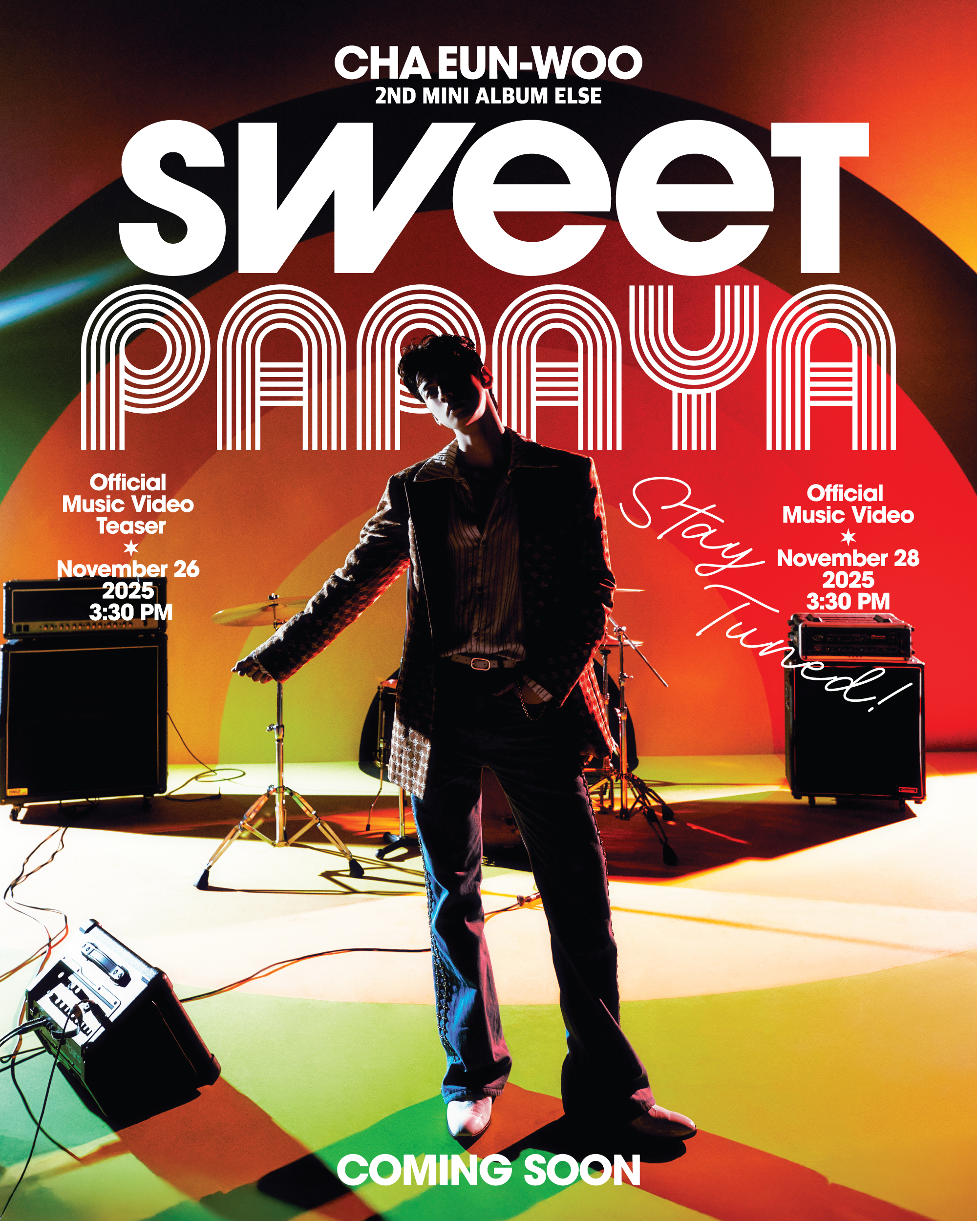 차은우는 13일 오후 공식 SNS에 두 번째 솔로 미니앨범 ‘ELSE’(엘스)의 수록곡 ‘Sweet Papaya’(스윗 파파야)의 오피셜 뮤직비디오 공개를 알리는 커밍순 이미지를 게재했다.